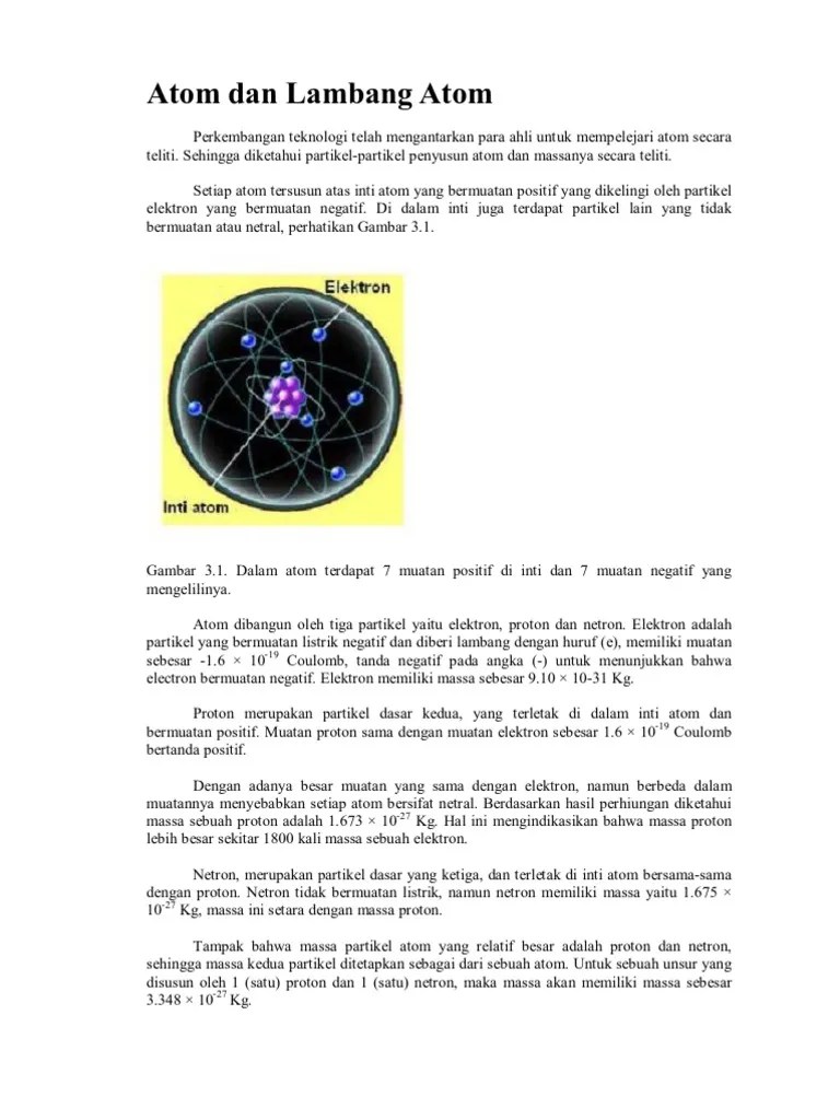 Oleh karena demikianlah atom akan seantiasa bergabung membentuk molekul yang kemudian berinteraksi membentuk padatan, gas, atau cairan. Oleh karena demikianlah atom akan seantiasa bergabung membentuk molekul yang kemudian berinteraksi membentuk padatan, gas, atau cairan. Neutron neutron adalah partikel penyusun Dengan kata lain, atom atau atomos adalah partikel ….. Proton dan neutron adalah partikel yang menyusun inti atom sedangkan elektron terletak di kulit atom.